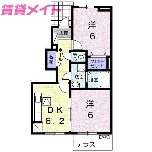 | 間取り | 2DK(洋6 洋6 DK6.2) | 築年月(築年数) | 2013年3月(築12年10ヶ月) |