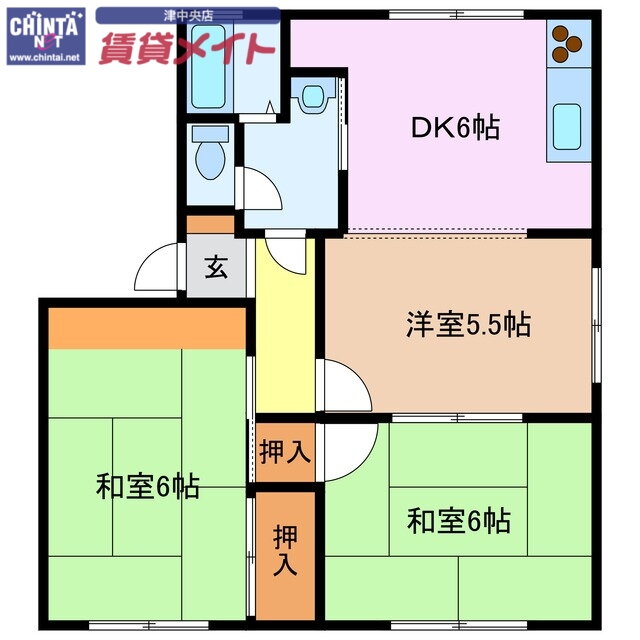 | 間取り | 3DK(和6 和6 洋5.5 DK6) | 築年月(築年数) | 1992年3月(築33年10ヶ月) |