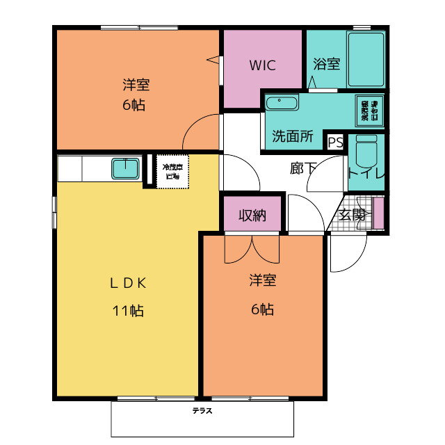 | 間取り | 2LDK(和6 洋6 LDK11) | 築年月(築年数) | 2001年10月(築24年3ヶ月) |