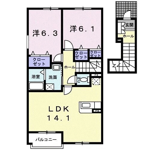 2LDK(洋6.30 洋6.10 LDK14.10) |