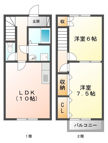 2LDK(洋7.5 洋6 LDK10) |