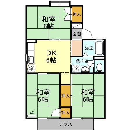 | 間取り | 3DK(和6.00 和6.00 和6.00 DK6.00) | 築年月(築年数) | 1991年3月(築34年10ヶ月) |