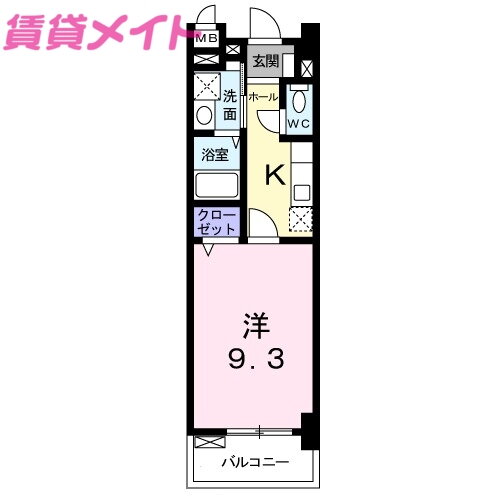 | 間取り | 1K(洋9.3 K3) | 築年月(築年数) | 2011年9月(築14年4ヶ月) |