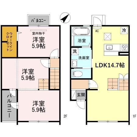 3LDK(洋5.9 洋5.9 洋5.9 LDK14.7) |