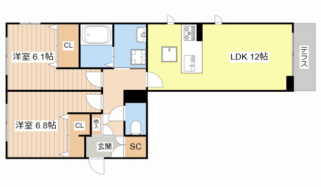 | 間取り | 2LDK(洋6.8 洋6.1 LDK12) | 築年月(築年数) | 2025年10月 新築 |