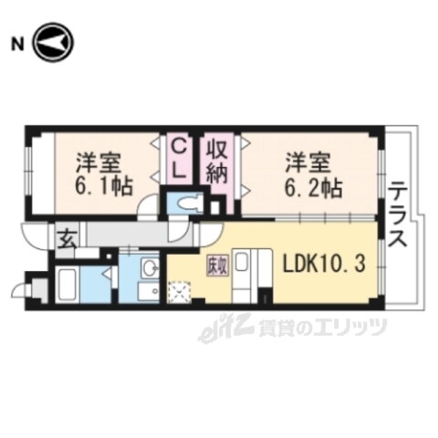 | 間取り | 2LDK(洋6.2 洋6.1 LDK10.3) | 築年月(築年数) | 2010年3月(築15年9ヶ月) |