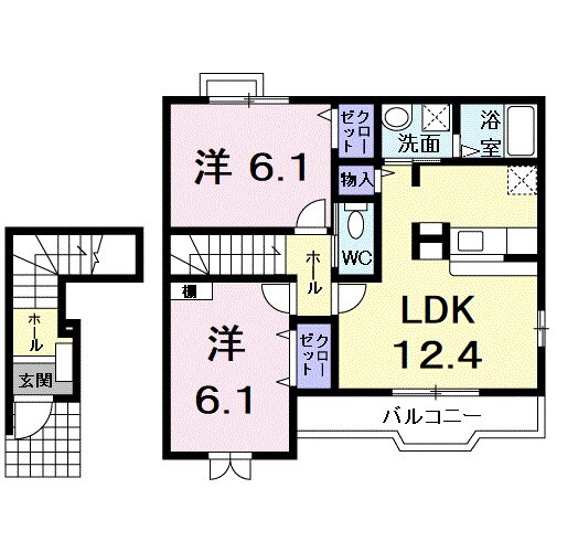| 間取り | 2LDK(洋6.1 洋6.1 LDK12.4) | 築年月(築年数) | 2007年6月(築18年5ヶ月) |