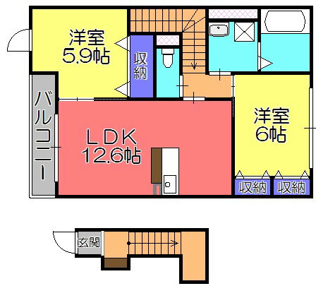 | 間取り | 2LDK(洋6.0 洋5.9 LDK12.6) | 築年月(築年数) | 2015年10月(築10年3ヶ月) |