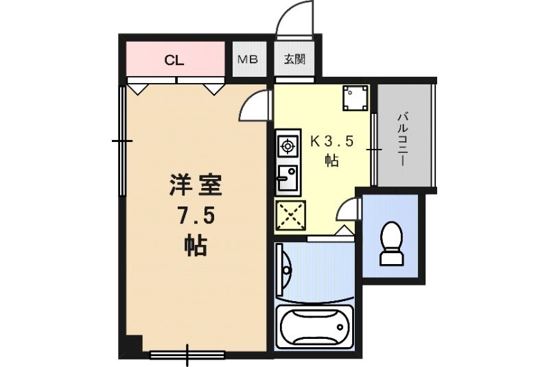 | 間取り | 1K(洋7.5 K3.5) | 築年月(築年数) | 1997年10月(築28年3ヶ月) |