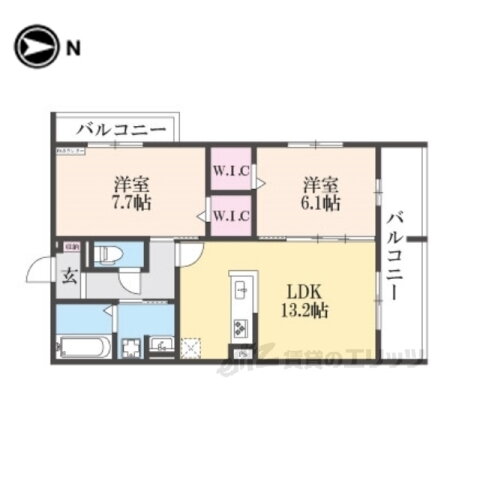 | 間取り | 2LDK(洋7.7 洋6.1 LDK13.2) | 築年月(築年数) | 2025年6月(築1年未満) |
