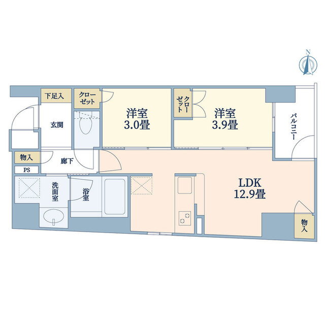 | 間取り | 2LDK(洋3.9 洋3 LDK12.9) | 築年月(築年数) | 2021年1月(築4年12ヶ月) |
