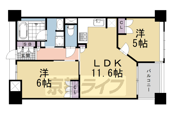 | 間取り | 2LDK(洋6 洋5 LDK11.6) | 築年月(築年数) | 2009年11月(築16年2ヶ月) |