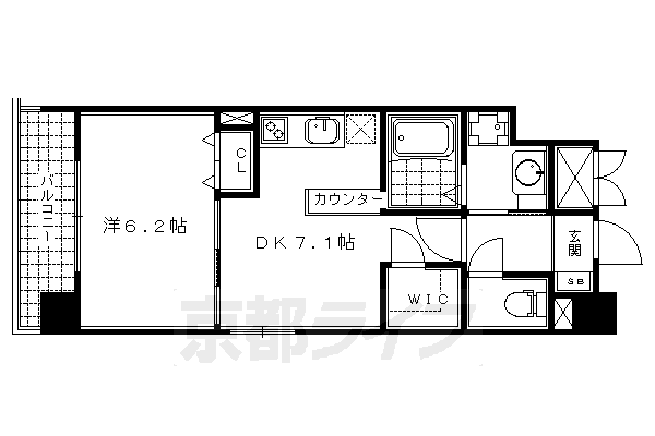 | 間取り | 1DK(洋6.2 DK7.1) | 築年月(築年数) | 2008年3月(築17年10ヶ月) |