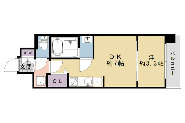 | 間取り | 1DK(洋3.3 DK7) | 築年月(築年数) | 2026年2月 新築 |