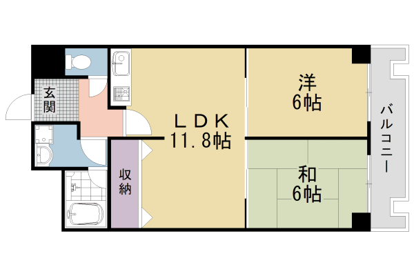 | 間取り | 2LDK(和6 洋6 LDK11.8) | 築年月(築年数) | 1977年5月(築48年8ヶ月) |