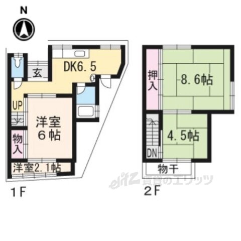 | 間取り | 3DK(和8.6 和4.5 洋6.0 洋2.1 DK6.5) | 築年月(築年数) | 1965年2月(築60年11ヶ月) |