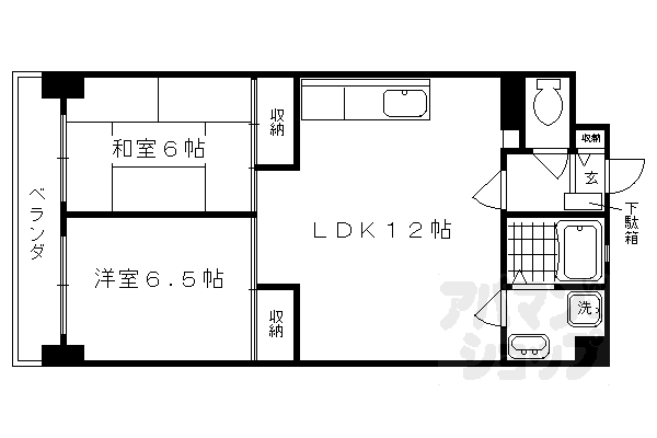 | 間取り | 2LDK(和6 洋6.5 LDK12) | 築年月(築年数) | 1994年12月(築31年1ヶ月) |