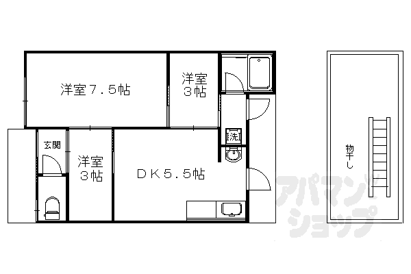 | 間取り | 3DK(洋7.5 洋3 洋3 DK5.5) | 築年月(築年数) | 1970年1月(築55年12ヶ月) |
