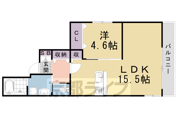 | 間取り | 1LDK(洋4.6 LDK15.5) | 築年月(築年数) | 2021年3月(築4年10ヶ月) |