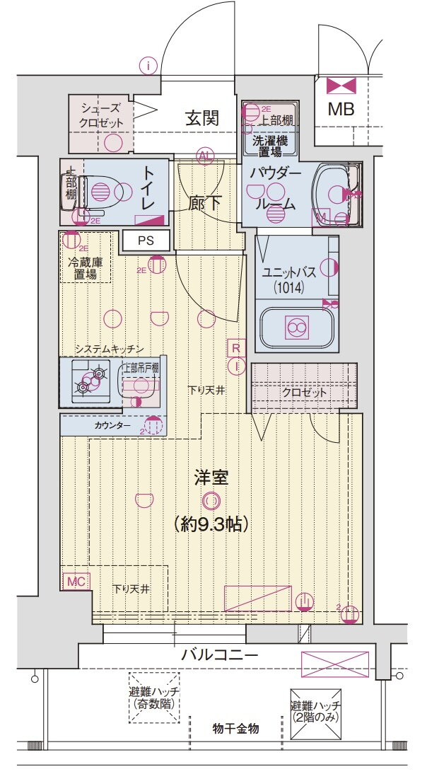 | 間取り | 1K(洋9.3) | 築年月(築年数) | 2026年1月 新築 |