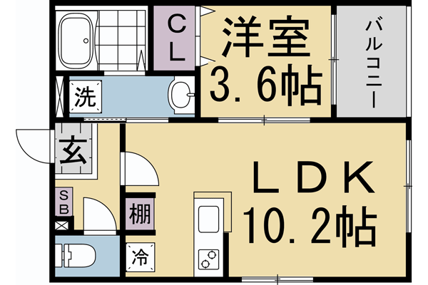 | 間取り | 1LDK(洋3.6 LDK10.2) | 築年月(築年数) | 2026年1月 新築 |