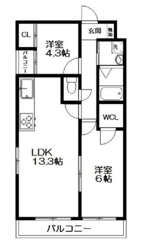 | 間取り | 2LDK(洋6.0 洋4.3 LDK13.3) | 築年月(築年数) | 2022年2月(築3年11ヶ月) |