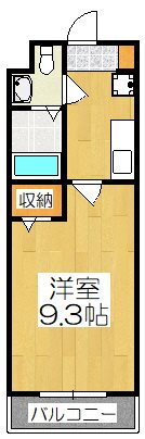 | 間取り | 1K(洋9.3) | 築年月(築年数) | 1999年2月(築26年11ヶ月) |