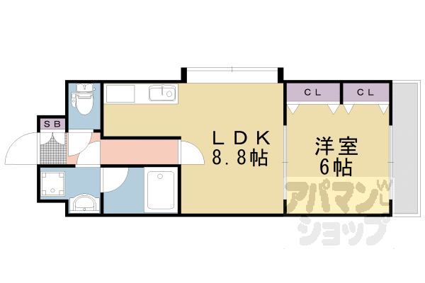 | 間取り | 1LDK(洋6 LDK8.8) | 築年月(築年数) | 2005年9月(築20年4ヶ月) |