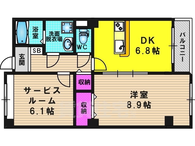 | 間取り | 1SDK(洋8.9 DK6.8 納戸 6.1) | 築年月(築年数) | 2015年1月(築10年12ヶ月) |