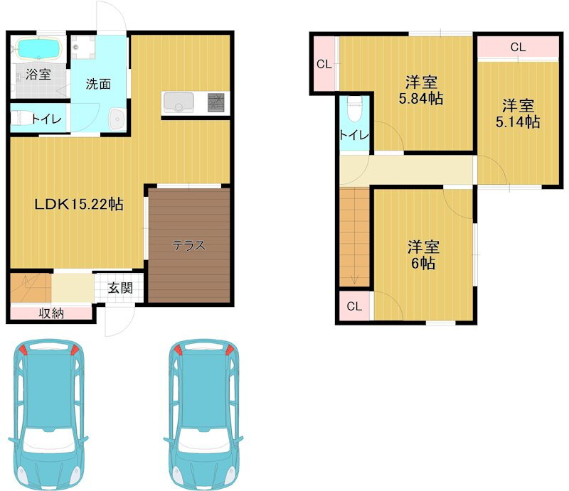 3LDK(洋6 洋5.8 洋5.1 LDK15.2) |