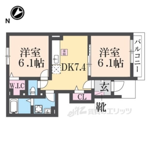 | 間取り | 2DK(洋6.1 洋6.1 DK7.4) | 築年月(築年数) | 2011年8月(築14年5ヶ月) |