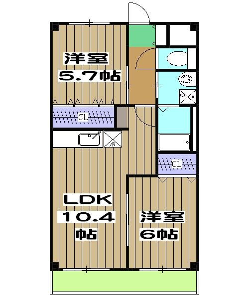 | 間取り | 2LDK(洋6.0 洋5.7 LDK10.4) | 築年月(築年数) | 2010年6月(築15年7ヶ月) |