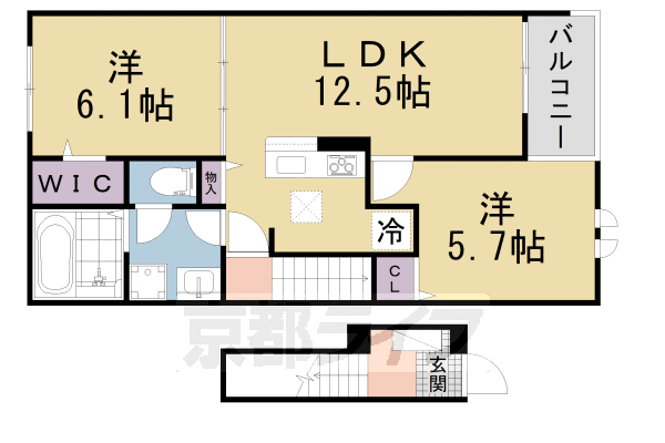 | 間取り | 2LDK(洋6.1 洋5.7 LDK12.5) | 築年月(築年数) | 2024年8月(築1年5ヶ月) |