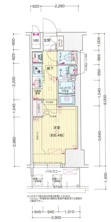 | 間取り | 1K(洋6.4) | 築年月(築年数) | 2022年11月(築3年2ヶ月) |