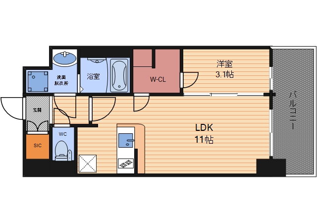 | 間取り | 1LDK(洋3.1 LDK11.0) | 築年月(築年数) | 2024年3月(築1年10ヶ月) |