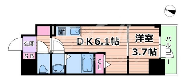 | 間取り | 1DK(洋3.7 DK6.1) | 築年月(築年数) | 2024年3月(築1年10ヶ月) |