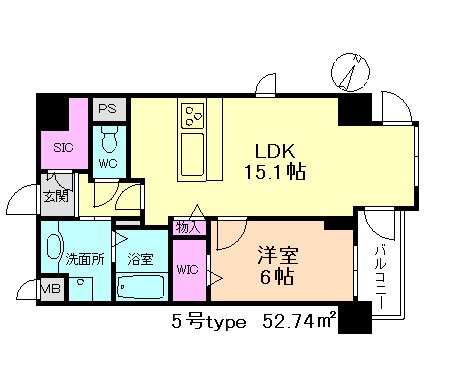 | 間取り | 1LDK(洋6 LDK15.1) | 築年月(築年数) | 2015年8月(築10年5ヶ月) |