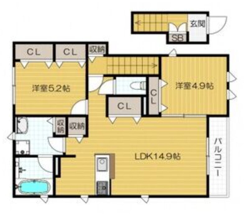 | 間取り | 2LDK(洋5.2 洋4.8 LDK14.9) | 築年月(築年数) | 2025年12月 新築 |
