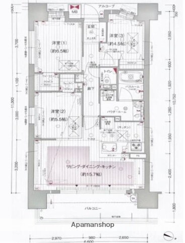 3LDK(洋6.5 洋5.5 洋4.5 LDK15.7) |