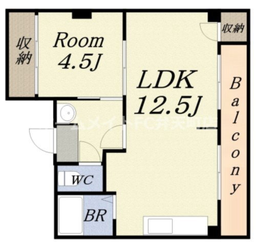 | 間取り | 1LDK(洋4.5 LDK12.5) | 築年月(築年数) | 1984年8月(築41年4ヶ月) |