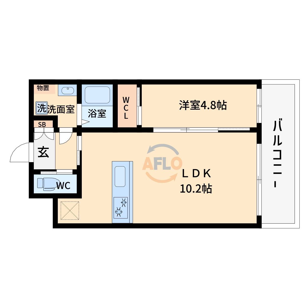 | 間取り | 1LDK(洋4.8 LDK10.2) | 築年月(築年数) | 2024年7月(築1年6ヶ月) |