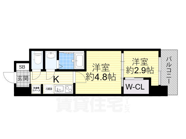 | 間取り | 2K(洋4.8 洋2.9) | 築年月(築年数) | 2024年4月(築1年9ヶ月) |