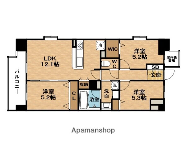 2SLDK(洋5.6 洋5.2 LDK12.1 納戸 5.3) |