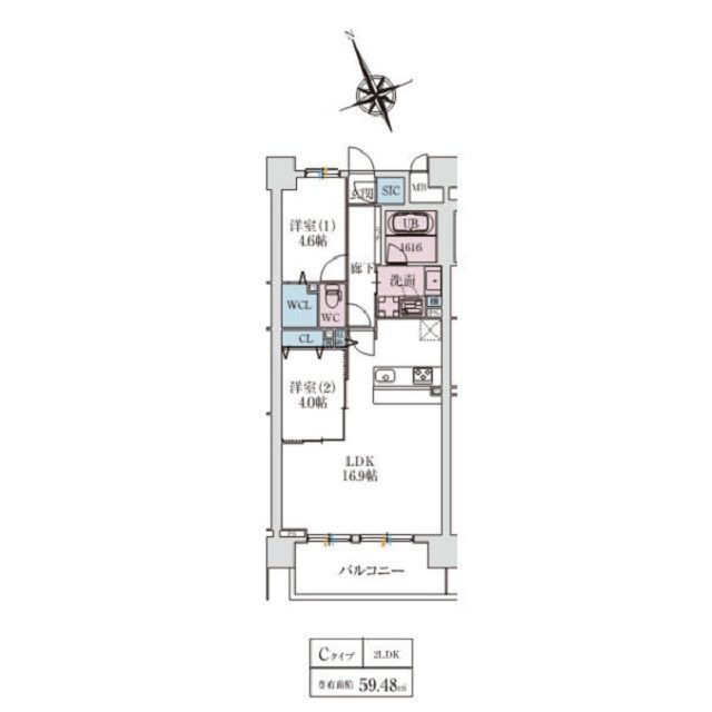 | 間取り | 2LDK | 専有面積 | 59.48m2 |