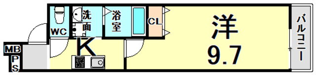 | 間取り | 1K(洋9.7) | 築年月(築年数) | 2021年2月(築4年11ヶ月) |