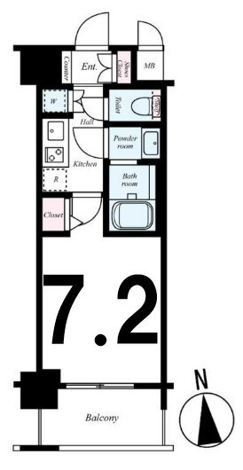 | 間取り | 1K(洋7.2) | 築年月(築年数) | 2008年3月(築17年10ヶ月) |
