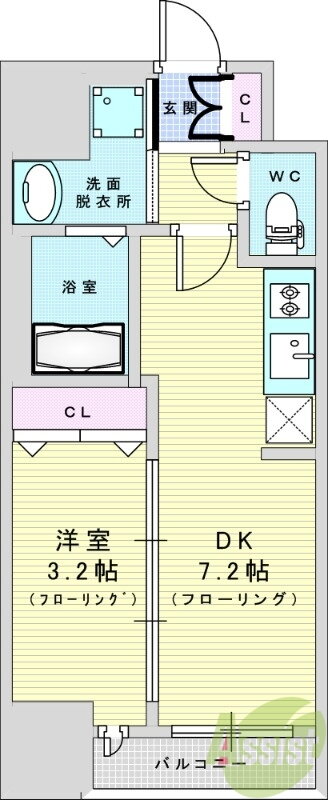 | 間取り | 1DK(洋3.2 DK7.2) | 築年月(築年数) | 2024年3月(築1年10ヶ月) |