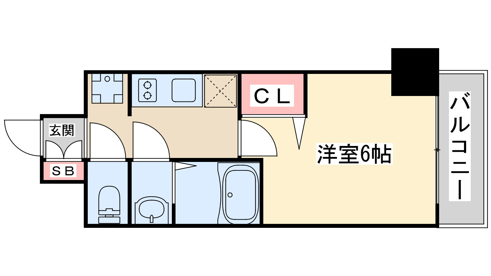 | 間取り | 1K(洋6.0) | 築年月(築年数) | 2023年2月(築2年11ヶ月) |