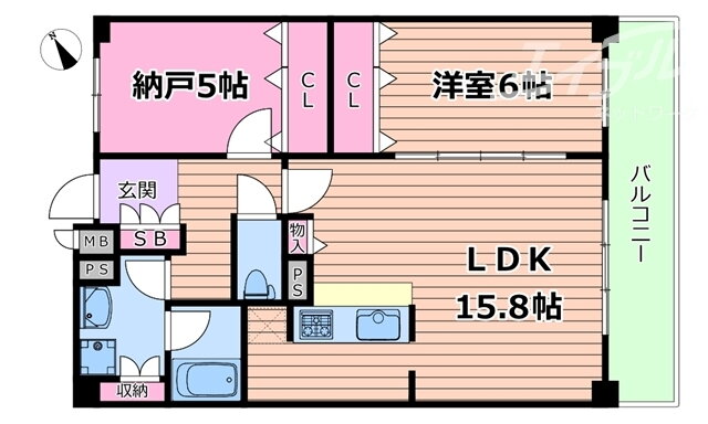 | 間取り | 1SLDK(洋6 LDK15.8 納戸 5) | 築年月(築年数) | 2006年11月(築19年2ヶ月) |