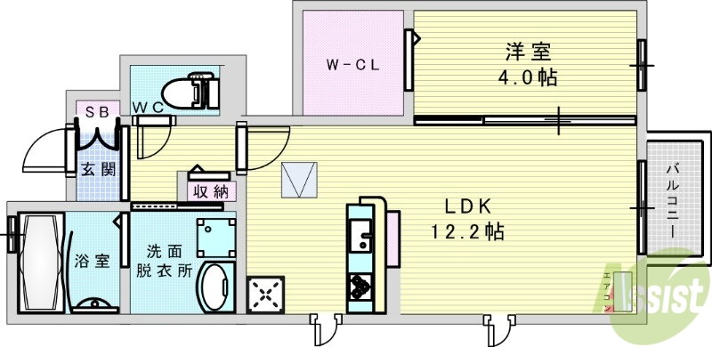 | 間取り | 1LDK(洋4 LDK12.2) | 築年月(築年数) | 2016年6月(築9年7ヶ月) |